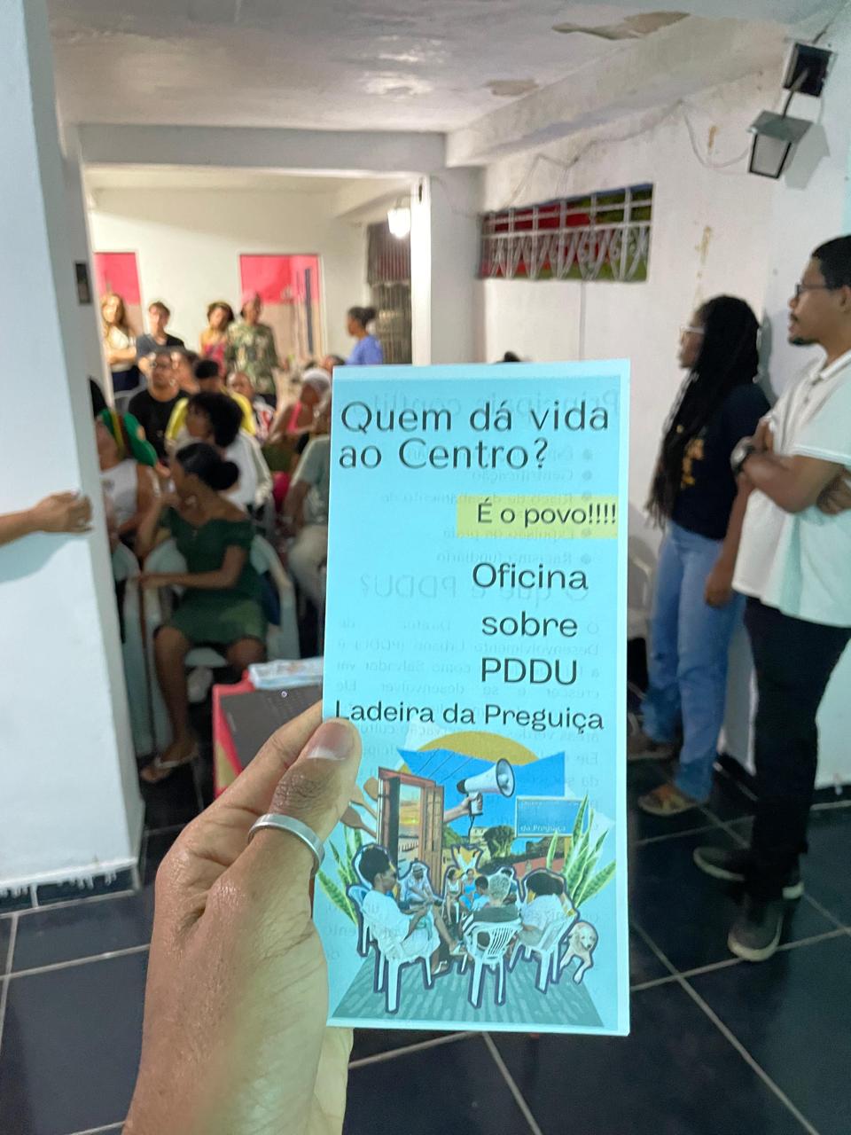 No dia 19 de agosto, a oficina do PDDU na Ladeira da Preguiça reuniu moradoras/es da comunidade e de comunidades vizinhas, ambulantes e trabalhadoras/es da Praia da Preguiça, professores e ativistas para debater o impacto do projeto de reforma da Avenida Contorno, bem como o Projeto de Lei nº 175/2024, de autoria do prefeito Bruno Reis, que altera de forma autoritária e ilegal o atual PDDU, proíbe o comércio local nas margens da avenida Contorno e altera o mapa de zoneamento de Salvador.