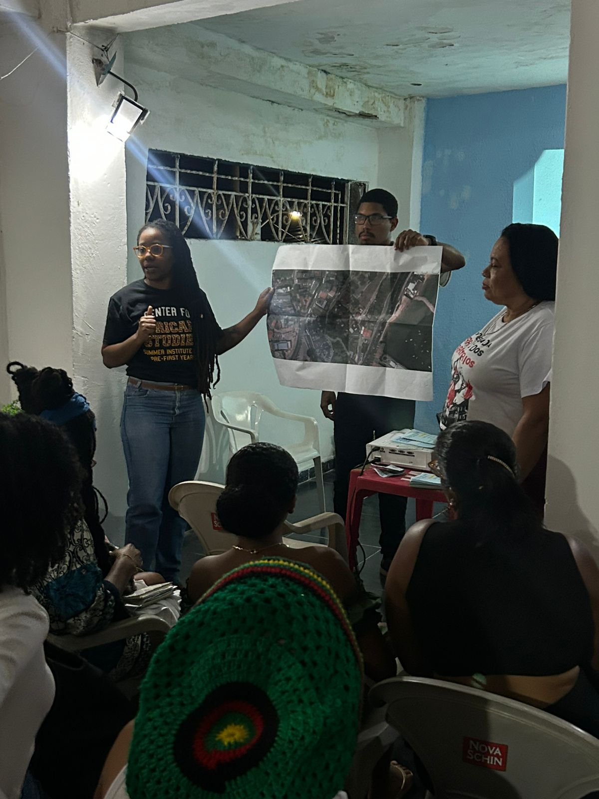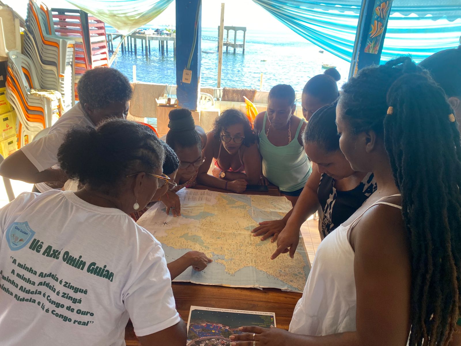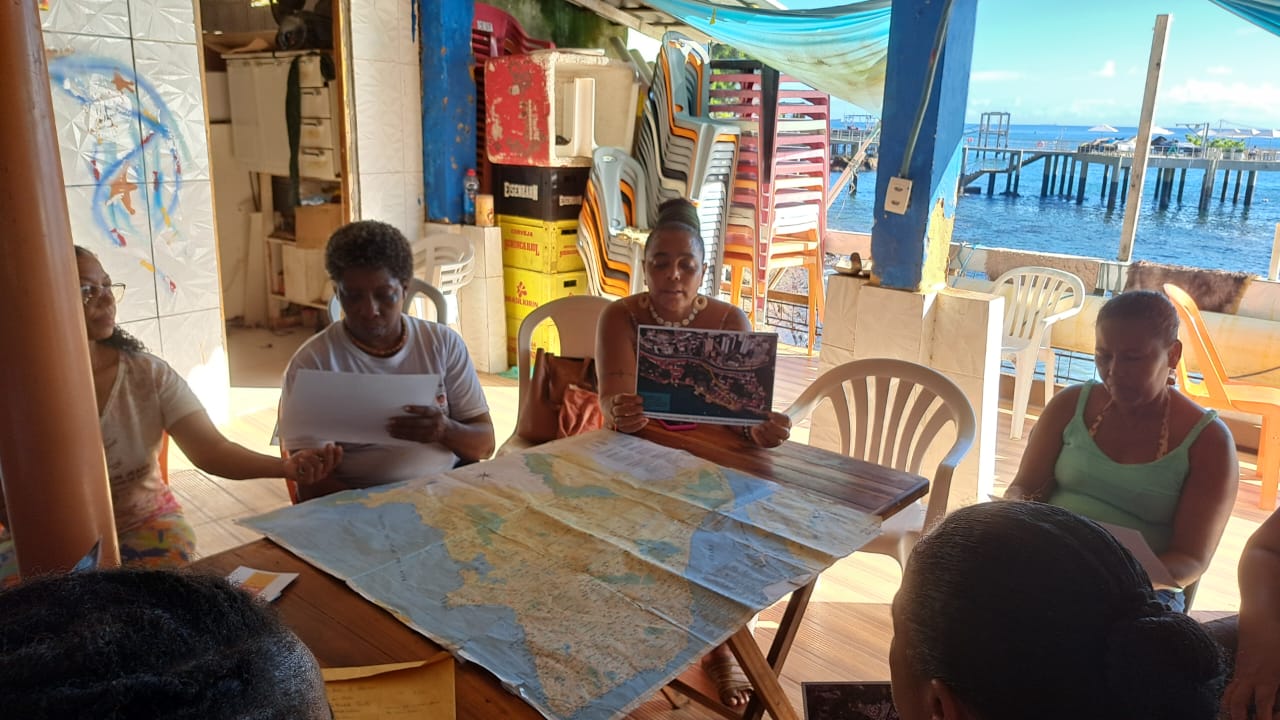No dia 19 de julho, na Gamboa de Baixo, a primeira oficina teve como metodologia a cartografia social, discutindo com as mulheres e pescadoras/res os projetos de intervenção na comunidade, como a reforma da Orla, a reforma do Forte e a expulsão de famílias, além do PL 175/2024 que também impacta a comunidade e comunidades vizinhas, como o Solar do Unhão.