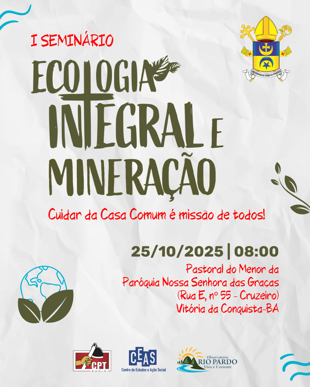 Arquidiocese de Vitória da Conquista promove seminário sobre ecologia integral e mineração no sudoeste baiano