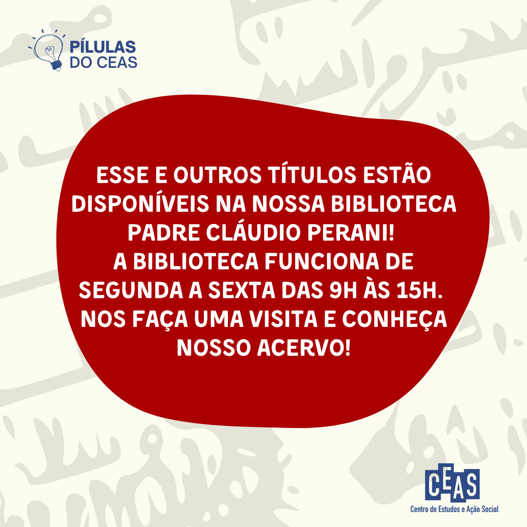 Esse e outros títulos estão disponíveis na Biblioteca Claudio Perani! A biblioteca funciona na sede do Ceas de segunda a sexta das 9h às 15h.